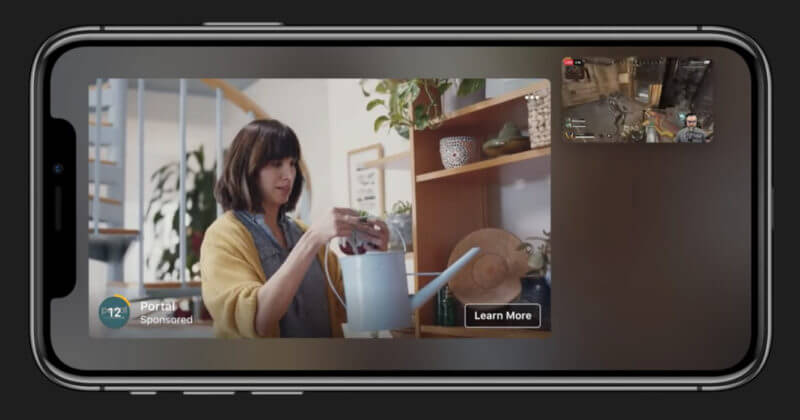 - Een mid-roll advertentie die tijdens de livestream in de videospeler wordt vertoond terwijl de uitzending in een gekrompen venster verder wordt afgespeeld.