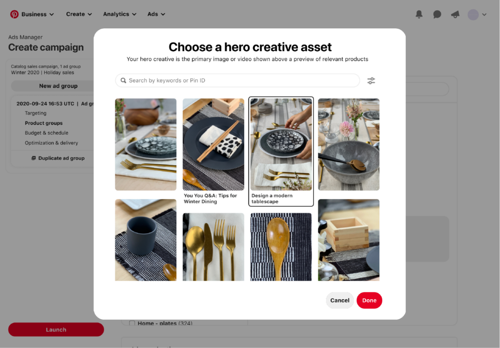 Het was al een tijd mogelijk om producten te taggen in collectie advertenties, maar nu heeft Pinterest deze optie ook beschikbaar gemaakt voor de overige advertentietypen. Merken zijn op deze manier beter in staat om de Pinterest gebruikers naar specifieke productpagina’s te leiden en ze vervolgens over te laten gaan tot een aankoop.