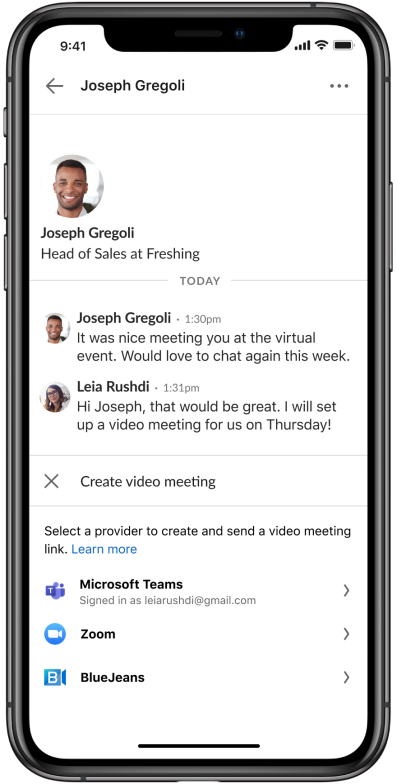 Om gebruik te kunnen maken van de videovergadering functie navigeer je naar de inbox en klikt in een (groeps)gesprek op de video icon. Vervolgens dien je eenmalig in te loggen via Microsoft Teams, Zoom of BlueJeans. Zodra het inlogprocess is voltooid krijg je de mogelijkheid om simpel en snel videovergaderingen aan te maken en te delen. De nieuwe functie is vanaf deze maand wereldwijd beschikbaar.