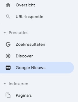 Google Nieuws is goed meetbaar. Dit is namelijk te vinden via een aparte tab in Google Search Console. Hierin kun je tot 16 maanden terug zien hoeveel klikken en vertoningen jouw pagina’s hadden in Google Nieuws. Het tabblad over zoektermprestaties ontbreekt t.o.v. het reguliere prestatierapport. Dit is logisch, want Google Nieuws is geen zoekterm gebaseerde feed.