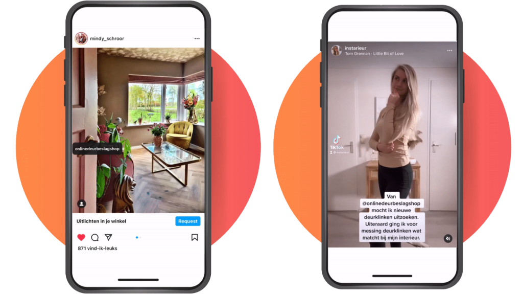 - Samenwerking met influencers: De volgende stap is het opzetten van de samenwerking met influencers. In het geval van Online Deurbeslagshop ging dit middels een barterdeal. Op die manier jaag je de naamsbekendheid en co-creatie aan.